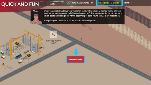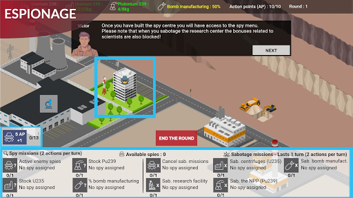 Matlamat permainan ini adalah untuk mengekstrak dan menghasilkan sumber yang akan membolehkan anda membina bom nuklear sebelum ini. lawan anda berbuat demikian. Permainan ini juga merangkumi tindakan pengintipan dan sabotaj yang dapat anda lakukan untuk memperlahankan kemajuan lawan anda dalam memperoleh bom.