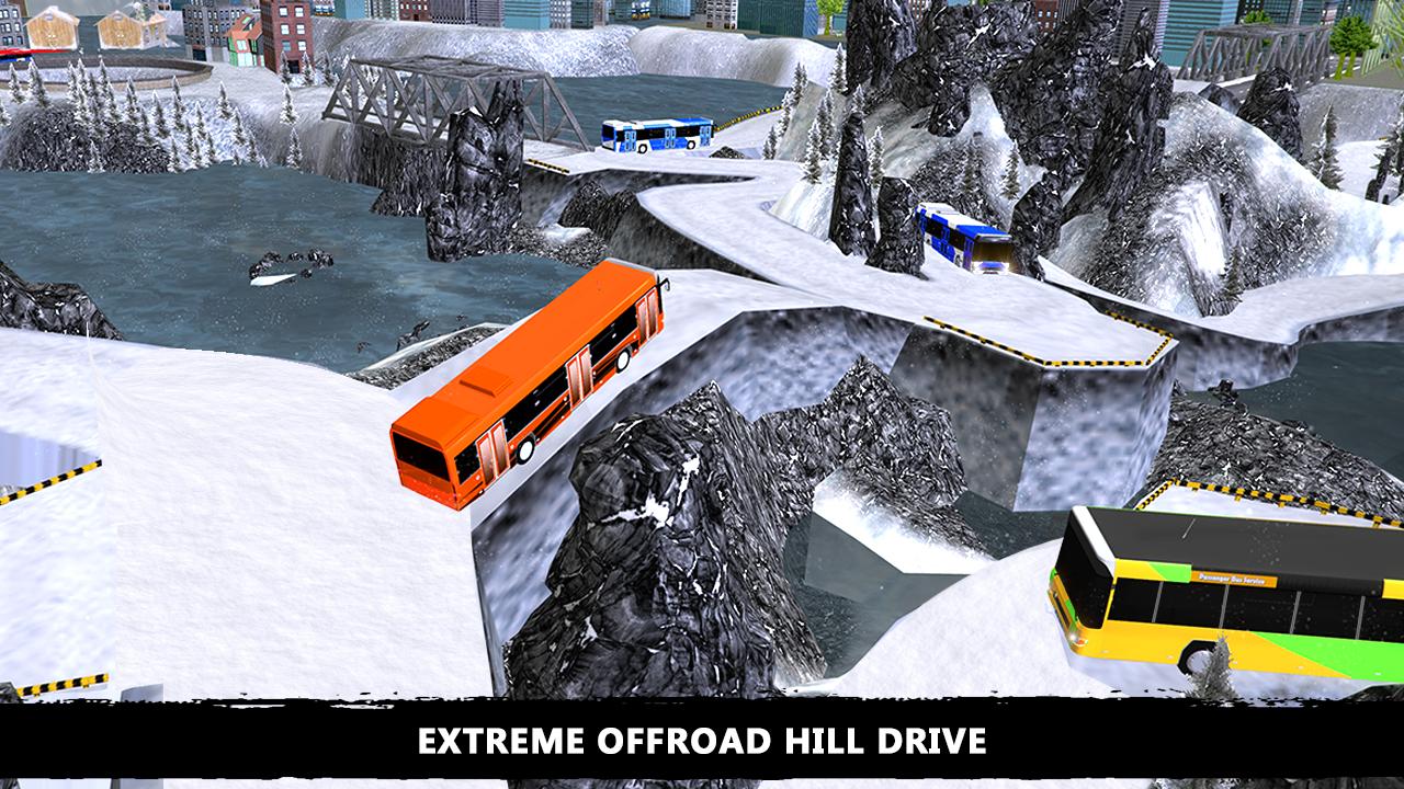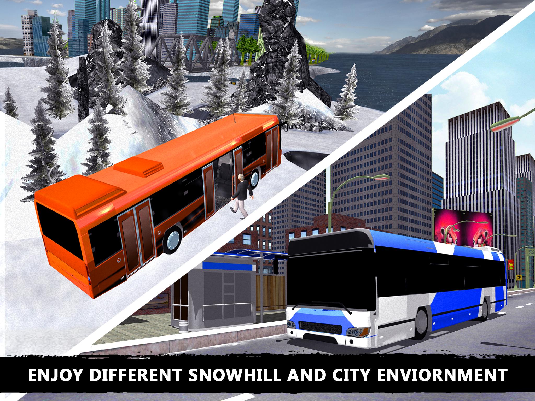 Be a bus driver fasten your seat belts and drive extreme offroad snow bus tourist drive game. Tourist bus hill climbing is full of thrill and adventure to pick up and drop passengers to their destination. Bring back the tourist from different hill station to the city. Get the real feel of nature with realistic off road bus driving on hills and mountain tops. Play as the extreme snow hill bus driver to fulfill the duty of passenger transportation. Tourist always need safe and fast transports especially in winter season when people move to hill sides, so be the furious bus driver in your transporter services. Drive bus carefully on hills with steep paths picking up tourist from hill station and drop them in the city hotels. Also pick the student from school and drop them at hill station. Have you ever experienced an off-road drive? Be the bus driver to drive off-road tourist bus in this extreme offroad snow hill driving transporter game.