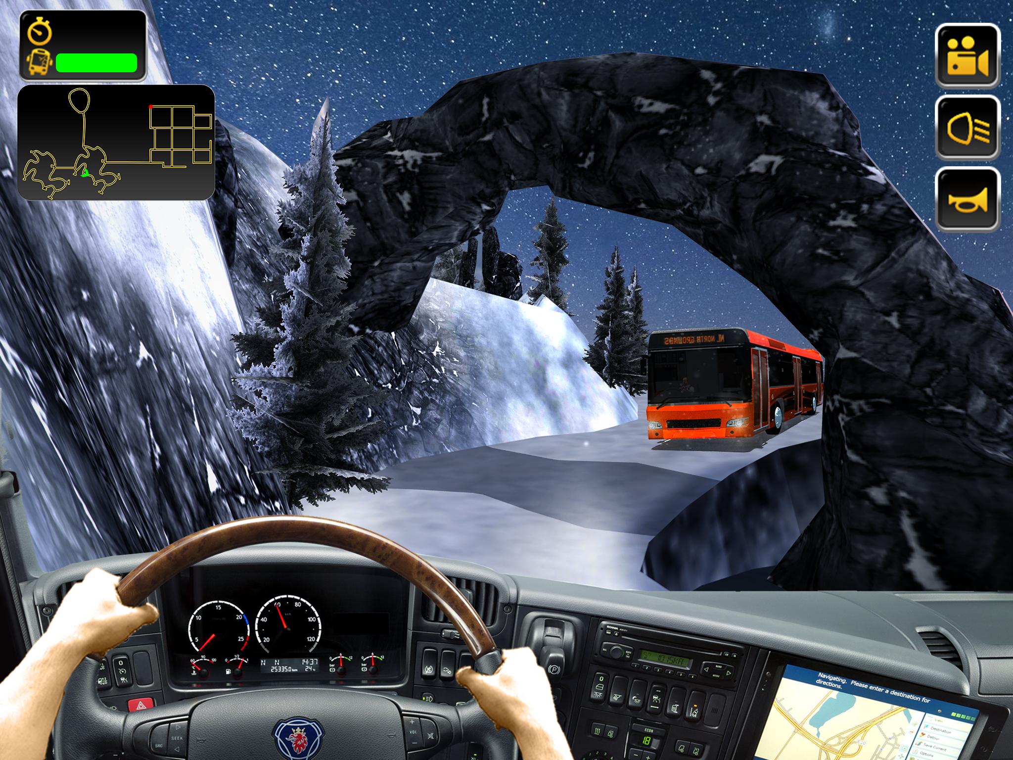 It’s a survival game, drive carefully hills are dangerous, control your vehicle properly and don’t let it fall off the cliff, keep the tourists safe. Survive your way to the snowy mountains. Tourists need a fast transporter Bus driver for their pick and drop from the city to the hill climbing mountain tops covered with show, so be fast race and rush to your destination, you might face heavy snow fall while driving so be careful and drive safely with perfection. Holidays, New Year and Christmas are full of tourists waiting for the Big Bus as their transport to get to their destination. It’s a Realistic Bus hill racing game. Don’t let you vehicle Drift from the path but control it as real driver.