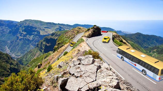 Drive police bus on hill climbing highway route and rocks land sliding.Enjoy with natural hilly environments.