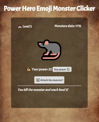 First game ever made where you can fight with emoji representations of monsters like rats, spiders, ogres, ghosts and elves!