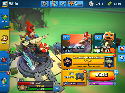 🦊 Naikkan taraf kereta kebal dan haiwan peliharaan untuk mendapatkan senjata dan perisai yang lebih berkuasa.