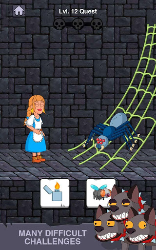 Gadis penyelamat adalah pengembaraan yang hidup di mana anda perlu untuk menyelamatkan seorang gadis dan membantu dia melarikan diri dari neraka. Anda perlu menyelesaikan teka-teki dan melengkapkan tahap di istana dan ruang bawah tanah. Tarik batang dan gerakkan tuil seperti dalam iklan. Pins juga melalui bilik-bilik dan memilih dari pelbagai tindakan: Hanya satu pilihan yang akan menyelamatkan gadis itu bebas dari tawanan lain dan mengumpul khazanah.