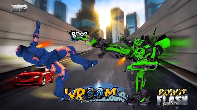 Robot Flash Futuristic Hero has stepped into the real 3D world to fight against the biggest enemies in combat war, Transformation of this super-duper Robot Flash hero will surprise you in battle field, technology is on a peak and criminals and mafia are planning hard to destroy this Robot Flash and damage the Vegas city but they have no idea they are going to face real super powers in 2018.