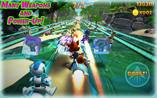 - Gunakan pelbagai senjata dan kuasa super untuk memenangi setiap perlumbaan!