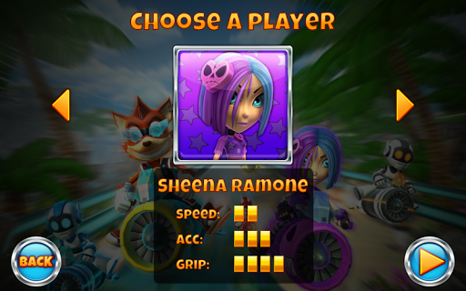Pilih watak anda antara Fox Rock dan Sheena Ramone, melompat dalam pertandingan dengan menolak keras pada pemecut dan menggunakan segala macam senjata dan barang-barang istimewa untuk berhenti tanpa harapan perlumbaan lawan anda!
