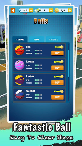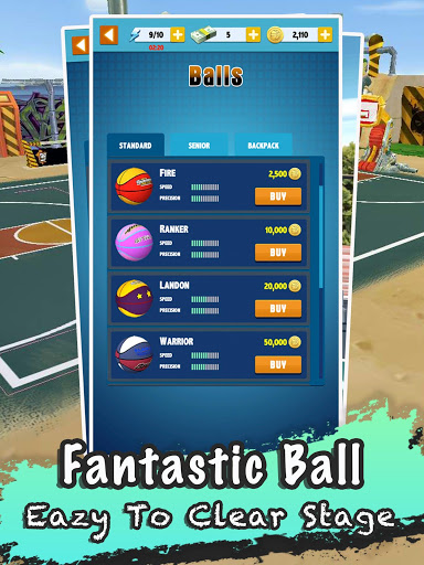 * Varied street scenes and basketball styles. Earn gold by completing levels and unlock cool basketballs. Speed and precision merger, hollow into the network no difficulty! Dominate the street courts by your wonderful basketball skills!