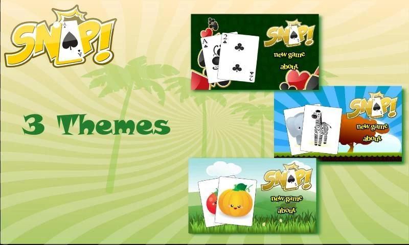Snap! contains a family of four simple card matching games including Snap!, Snap and Match, Heart Attack and SlapJack. These games are fun and can be easily taught to the young children or kids.