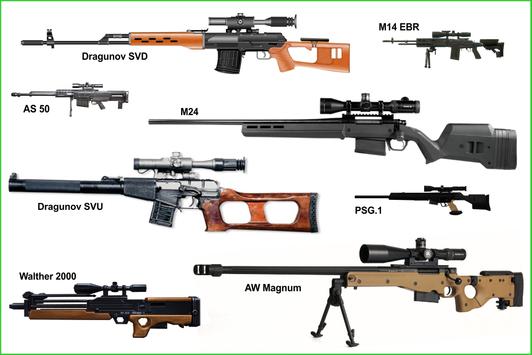 Sniper Gun Sounds application contains shooting sound of this guns: