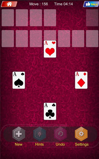 Win a game by creating four stacks of cards, one per suit. The secret of winning is the extra four cells!