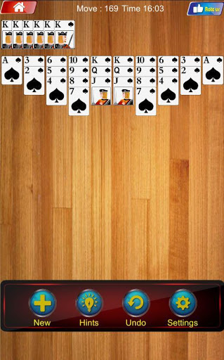 Play with two decks of 52 cards each. Depending on difficulty, the deck consists of one, two or four different suits. Try to collect them with fewest moves possible!