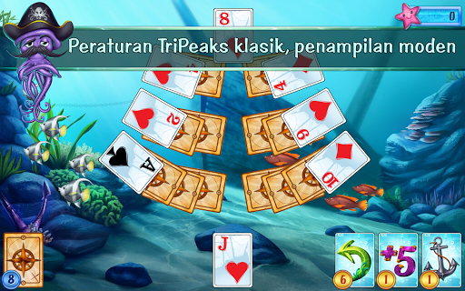 Nikmati tema bawah air yang terang-benderang ketika anda meneroka peta-peta lanun dan mengembara sepanjang permainan kad pengembaraan solitaire yang menyeronokkan ini. Temui sotong lanun, ikan-ikan, ketam liar dan juga kuda laut lanun. Sesuai untuk mereka yang sukakan permainan kad pengembaraan atau lanun.