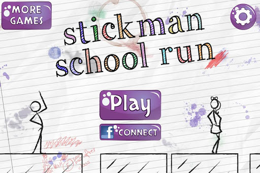 Dalam impian seorang budak lelaki, Stickman School Run cuba untuk melarikan diri kerja rumah beliau. Walaupun melompat dari lukisan kepada lukisan , mengelakkan gunting yang dilemparkan kepadanya, dia cuba untuk menyelamatkan teman wanitanya. Misi anda adalah untuk membimbing beliau sehingga akhir setiap peringkat. Anda akan perlu untuk melompat dari platform tanpa jatuh ke dalam perangkap , tetapi anda juga akan perlu untuk mengelakkan masalah yang datang ke arah anda.