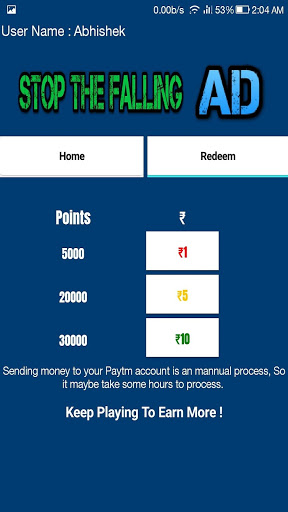 Stop The Falling Ad is a new way to earn money in your free time. Play this simple game where you just have to stop the falling Ads, for every ads you stop you will get points. Redeem these points to get paytm cash.