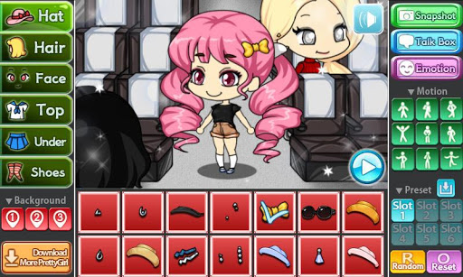 You can create your own Pretty Girl comics by using various emotion display and dialogue,