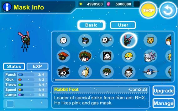 Hero can become stronger, as well as his masks and weapons! Use different techniques to become invincible.