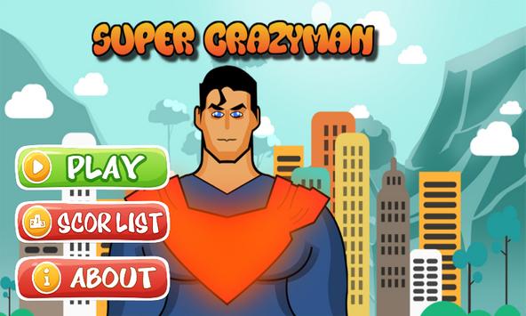 Click on the screen to make Super Crazyman jump and run.