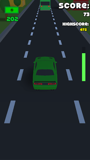 You can choose from two game modes. The first game mode has three lanes with heavy traffic that you must avoid. You must tap on the right or left side of the screen to switch lanes. You can collect cash along the way which you can use to unlock new cars. You can also collect fuel to extend your race time. Longer you drive without collision, the more points you collect and reach a new high score.
