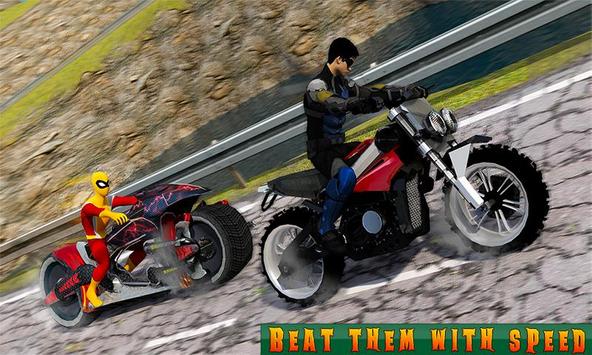 • Multiple types of super hero bikes to enrich your experience of racing games 3D.