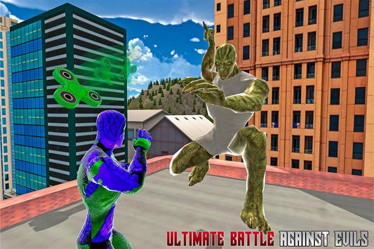 This fidget spinner fight game is absolute treat for the lovers of flying spider city battle. Strange mutant powers with kick and super punch will help you to end your mortal enemies in quick spinner throw. Super spider will defend as the alone army in this battle game. Flying spider battle has been started in the city. Become a survival in this war and use your powers on the right time and defeat evils. Spider city fighter has multiple thrill missions to accomplish.