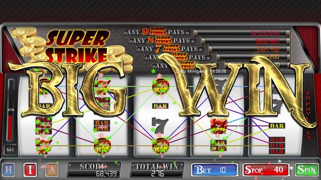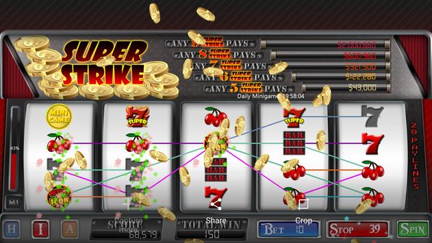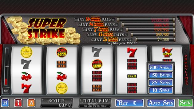 Super Strike is feature packed with global high scores, progressive slots to make the game fair, daily minigames to earn extra coins, achievements to keep you playing for days, and Super jackpots to hit the big win!