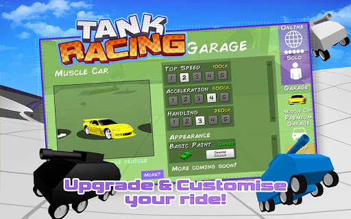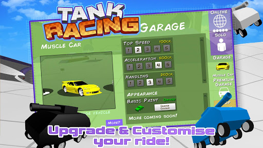 Setelah anda memainkan beberapa permainan Mengapa tidak menaik taraf tangki anda atau kenderaan baru yang baru dibeli? Anda boleh menghabiskan kredit anda pada pelbagai pilihan penyesuaian dan naik taraf yang besar. Anda juga boleh memilih untuk membeli kenderaan baru. #