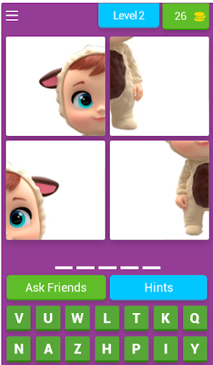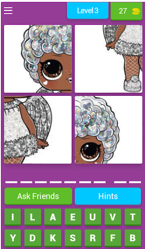 Ini adalah permainan trivia yang bagus untuk anda semua yang suka bermain dengan anak patung.Anda mempunyai empat gambar boneka yang akan menolong anda meneka namanya.Uji pengetahuan anda dan cuba ketahui seberapa baik anda mengetahui nama anak patung.