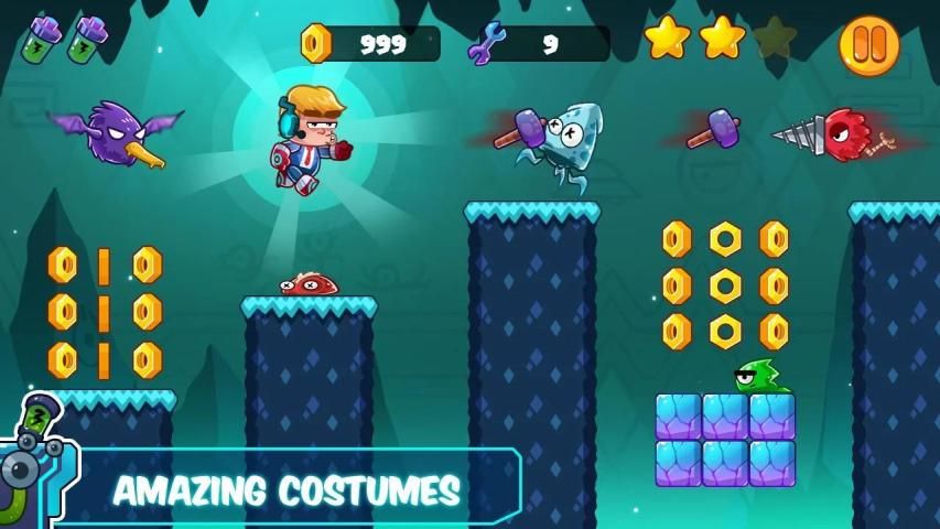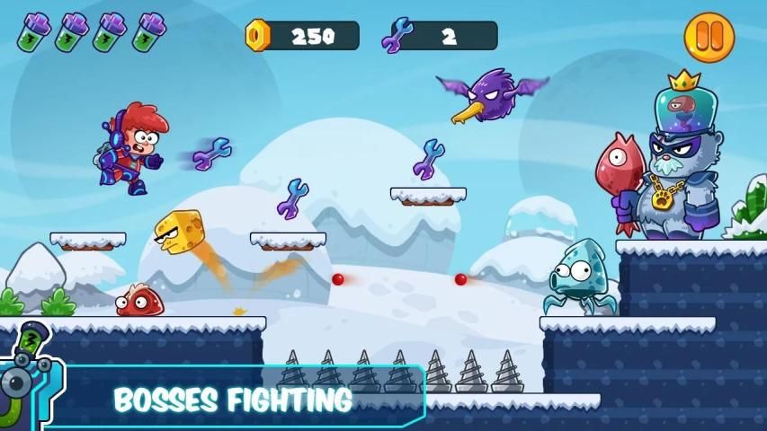 Toon Space Adventure run and collect coins, power-up to fight with 4 boss on 4 worlds.