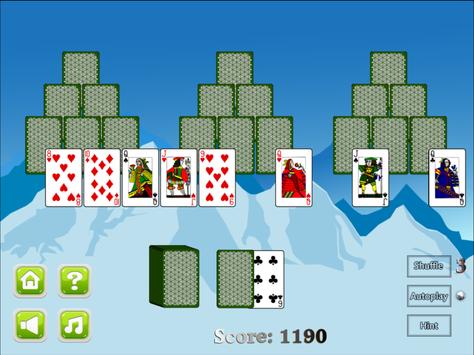 Play the Tri Peak Solitaire card game where you match cards arranged in three pyramid shapes. Clear as much decks as you can to get a high score!