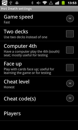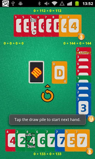 Do you like to play card,especially UNO card?It is a very interesting and popular game.This app UNO Card Phone Game can move the wonderful game to your phone and you don't have toworry the people are not enough!If you don't know how to play,click the help on the main interface.It will tell you how to play the game indetail.To play a card,simple tap it.At the right-hand corner it will show you how many card are in yourhands.Before playing the game,enter the setting first.It allows you to set the game speed which is veryhumanized.If you are a green hand,set the speed to low or very slow.If you are familiar with thisgame,you could set it normal or fast.If you are a expert or master,set it to very fast.It all depends onyour level.Select to use two decks instead of one or not.Have a computer play the fourth(south) seat.Play with cards face up which is useful for learning the game for testing.Enable to choose cheat level,honest,rascal,scoundrel and dirtbag.Or you can also input the cheat codes.Set the level of other player.For skill strong,weak or expert.For aggression,pushover,nice guy,jerk,etc.If you exit from the game mindlessly,click Continue button to resume.Come on to download it to your phone and have a try.You will find the game interesting and the app amazing.Waiting for your 5 stars and leave your comments here.+++++++++++++++++++++++++++++++Attention+++++++++++++++++++++++++Creating an app takes time and money, In order to keep creating great (and free!) apps, we are usingicon or notification ads so thatwe are able to create more great apps for you guys.Just used for ads. No personal information collected.+++++++++++++++++++++++++++++++++++++++++++++++++++++++++++++++++++Merle Robbins, an Ohio barbershop owner, liked to play cards. One day in 1971, Merle came up with theidea for UNO and introduced the game to his family. When his family and friends began playing UNOmore and more, Robbins and his family spent $8,000 to have 5,000 games made. At first Robbins soldUNO from his barbershop. A few friends and local businesses sold it as well. Later Robbins sold theUNO rights to a funeral parlor owner and UNO fan from Joliet, Illinois, for $50,000, plus royalties of10 cents per game.