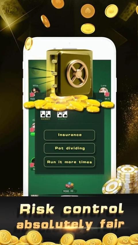 We provide Insurance, Pot dividing, Run it more times functions to reduce the risk of poker players. Besides we promise our texas game is completely fair.