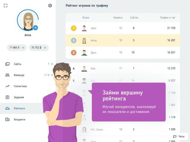 Взломы доступны с 13 уровня. Находите цель через рейтинг, заходите, и ставьте сотрудника на взлом. Естественно, для взлома нужен хороший программист. При удачном взломе можно будет удалить рекламу, украсть контент, срезать поисковый трафик, уменьшить лимит хостинга или украсть часть трафика.