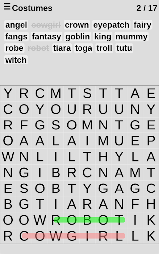 Semua teka-teki berfungsi di luar talian dan setiap teka-teki mempunyai tema. Kata-kata boleh dipilih ke hadapan atau ke belakang. Pelbagai saiz boleh didapati, dari permainan sederhana 8x8 ke 32x32 yang mencabar.