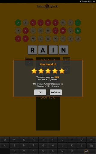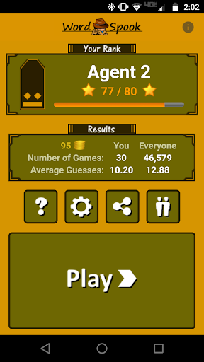 All new rankings, stars, coins, and a "Letter Board" to keep track of letters that are definitely in (or not in) the secret word. You start as a "Trainee" and work your way up to higher ranks by earning stars. The better you play compared to others with the same word, the more quickly you will earn stars and coins. Use coins to buy clues to help guess words even more quickly.