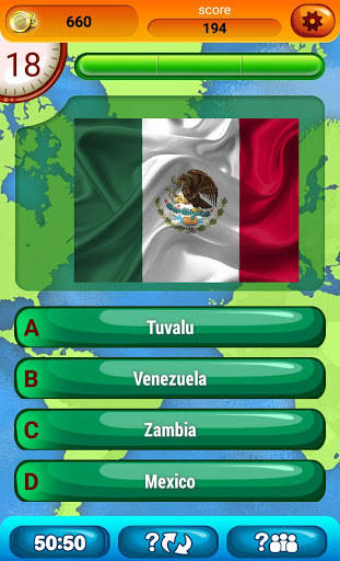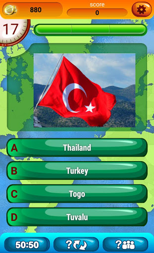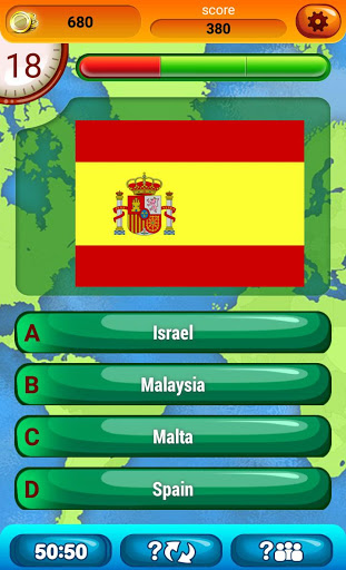 ➜ Bermain Bendera Permainan Kuiz dan Guess negeri dengan bendera: memilih salah satu jawapan yang ditawarkan dan pantas, jam terus berdetak;