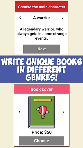 - Tulis buku sebenar: dari penutup buku dan reka bentuk untuk menulis plot dan menamatkan buku! Jika anda tidak boleh menulis untuk diri sendiri - permainan ini akan menjana plot buku yang unik!