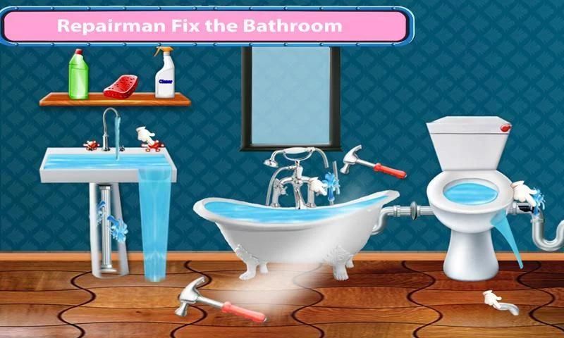 You are met by a worried mommy who’ll take you to the messy kitchen where water is leaking everywhere on the floor. You have to stop that leakage, repair that broken pipe and seal it with the seal kit so that no more water leakage can be seen for the construction game. A broken sink, kitchen water pipes are also damaging kitchen cabinets as well as wooden cupboards. Fix the water issue and clean the remaining mess in the kitchen playing Plumber Repairing House Fix It – Home Repair Game. Bring the best decoration to kitchen after repair works. Your home appliances are also in danger with the leaked water in the house. Save your home from the mess leaked pipes are creating. Also check the old water pipes in the bathroom as well to save the bedroom décor in this repairing game.