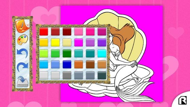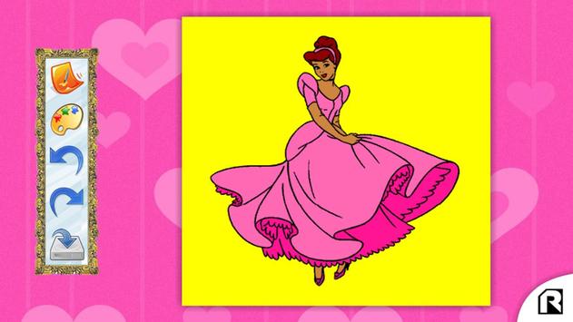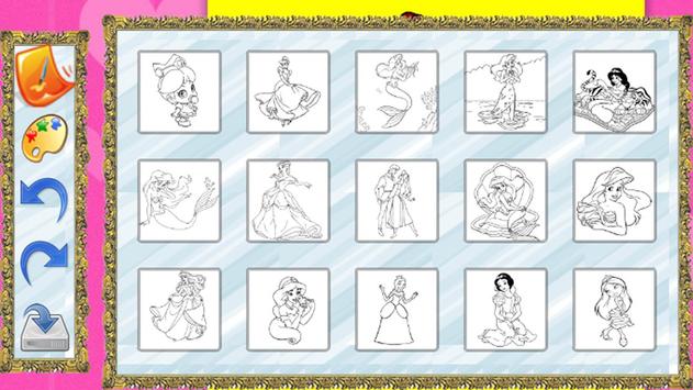Game geared toward children, features a selection of images of princesses coloring where you can select draws, colors.
