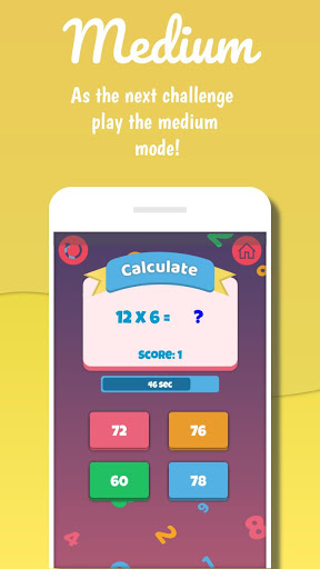 Mod seterusnya , adalah mod "sederhana"! Mod ini akan mencabar kemahiran matematik anda. Dalam mod ini, anda juga mendapat 60 saat dan tugas matematik yang berbeza, tetapi anda mesti membuat keputusan antara 4 penyelesaian yang dicadangkan, hanya satu daripada mereka yang betul!