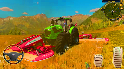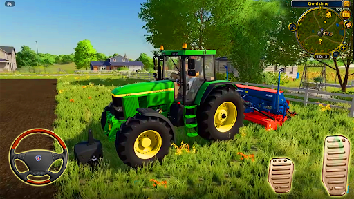 Farming Simulator - Tractor 3D Game lets you take charge of your own farm. Drive impressive machines like tractors and harvesters on your farm. Dive into the thrilling world of farming with this 3D tractor game – Farmer Sim. Sell your crops in the market to earn money, which you can reinvest in additional machinery and expand your farm while developing your village like a pro.