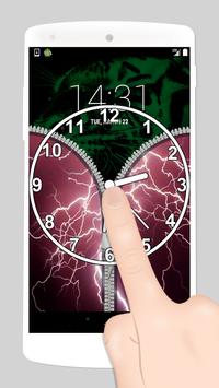 fake analog clock zipper lock screen, a cute zipper screen lock with time display.