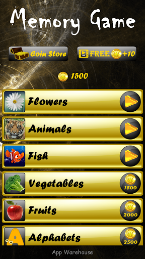Permainan Memori ini mengandungi iklan yang diberi ganjaran yang membantu anda mendapatkan lebih banyak duit syiling dengan melihatnya. Dapatkan lebih banyak duit syiling untuk membuka kunci kategori seterusnya untuk menikmati menyelesaikan teka-teki. Anda juga boleh membeli duit syiling dari kedai syiling dalam permainan memori. Permainan ini percuma untuk dimuat turun dan dinikmati.