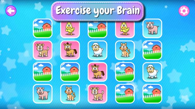 Let your toddler play this cute matching game regularly and you'll see the child's memorizing skills improve, concentration levels rise and the child is able to focus easily. This excellent mind trainer will give your kid an excellent “brain training” activity. Download Farm Animals – Matching Game completely free of charge and you'll get the best brain gym.