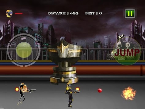 offers an experience very close to home consoles. You definitly need to shoot the enemies like a hell.reach maximum distance without loosing the life,take maximum powerups on your way ,it will help you reach maximum distance. The high quality graphics are impressive, containing smooth animations and outstanding effects.One of the main feature of this game is when the Commando reaches every 1000 meter there is a Difficult Boss Fight,you need to Destroy the Boss to move from there.