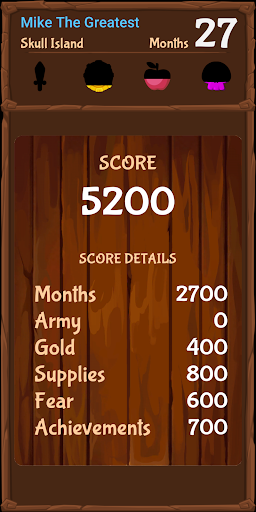 Raise your sails and reign your pirate ship, be careful and always try to stay in the middle of our 4 stats, army, gold, supplies and fear.