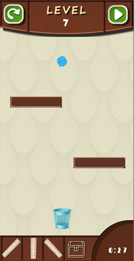 Anda perlu menavigasi bola kertas ke dalam sampah dengan menggunakan penguasa.Anda telah diberikan 3 kebolehan seperti: Tangan yang akan memberi anda keupayaan untuk memindahkan sampah, tukul untuk memecahkan dinding dan pemasa dari mana anda boleh menambah masa tambahan ke undur.