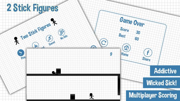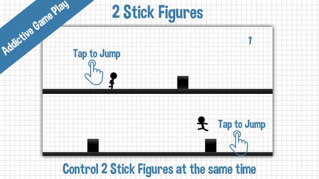 Two stick figures are one of the endless running game in which both sticky figures simultaneously jumps and swipe until die. What makes this game different from others is two sticky figures. It's classy black and white visual effects followed sound effects are perfect. Your goal is to pass the obstacles by controlling character until you die. Stick Figures is free of cost and is available for all android devices. The game is a lot of fun and it moves you to run into dead.