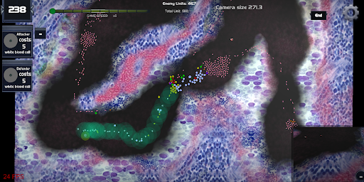 Melindungi sel darah putih dan badan manusia, aplikasi untuk Android terdiri daripada 12 tahap dalam RTS, 2 peringkat dalam edisi peta dan 4 tahap di arked.