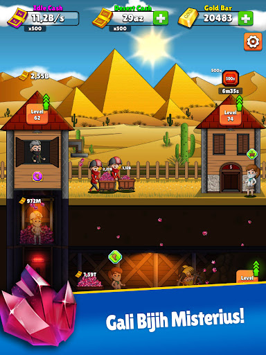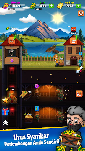 Jadilah taikun pelombong emas, luaskan empayar anda, tingkatkan wang tunai dan pendapatan tunai terbiar anda dalam permainan simulator ahli perniagaan terbiar ini di mana anda boleh memperoleh wang dengan membeli banyak aci lombong! Menjadi pelombong emas terkaya di dunia!