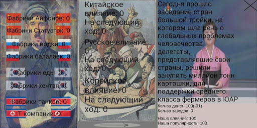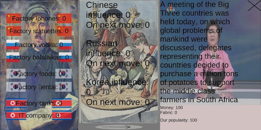 Dictator's life Lite is the new and first Strange Strategic Games game where you will have to experience all the hardships of a dictatorship after the economic crisis. You will have to choose your line of development of the country, liberalizing and subordinating to other countries, or it becomes stronger, and as a result, arrange a world war. You decide.